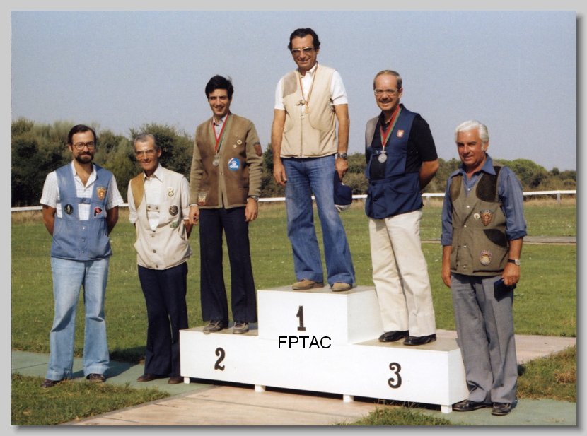 Pódio do Campeonato da Europa de Tiro ao Voo - Alicante - Espanha 1975 - Portugal Campeão DA ESQUERDA PARA A DIREITA: Maurício Matias - Armando Marques - Luís Tinoco