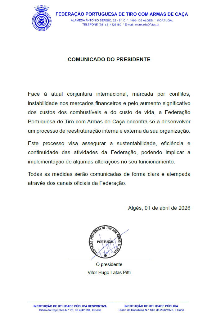 A Federação Portuguesa de Tiro com Armas de Caça deseja aos atletas e equipa técnica os maiores sucessos nesta importante competição internacional.