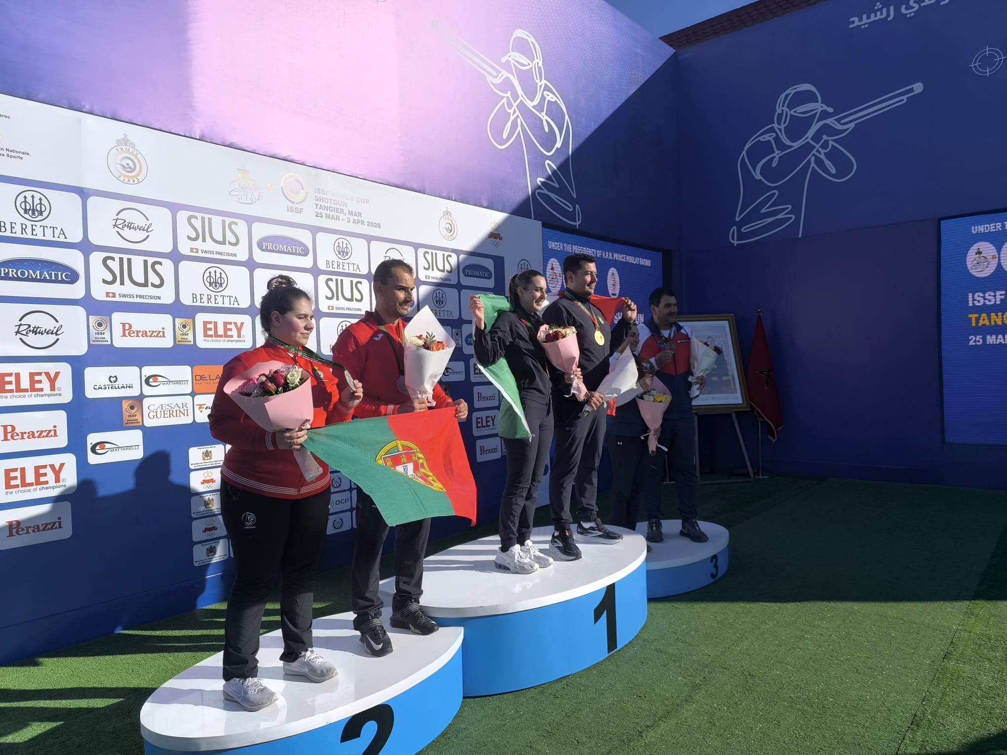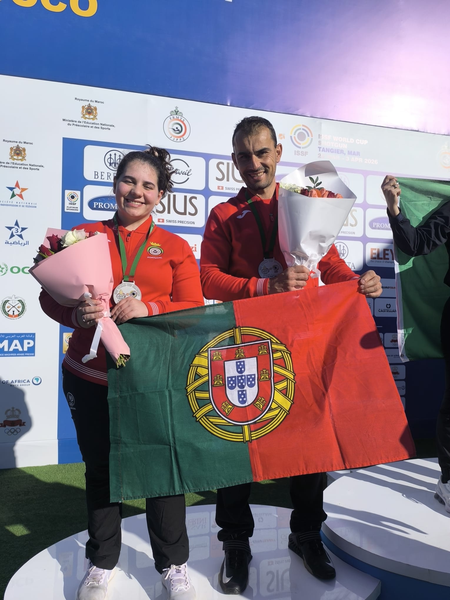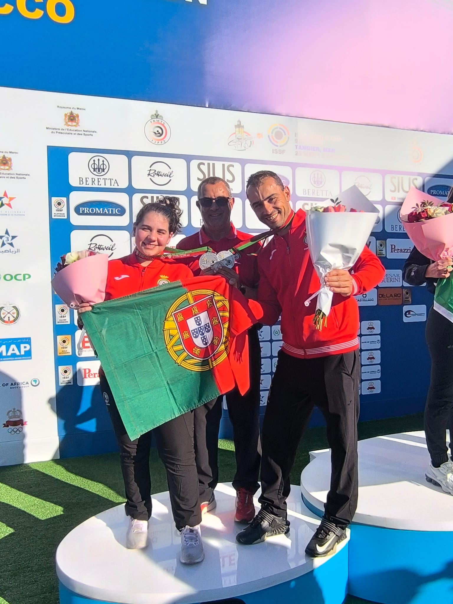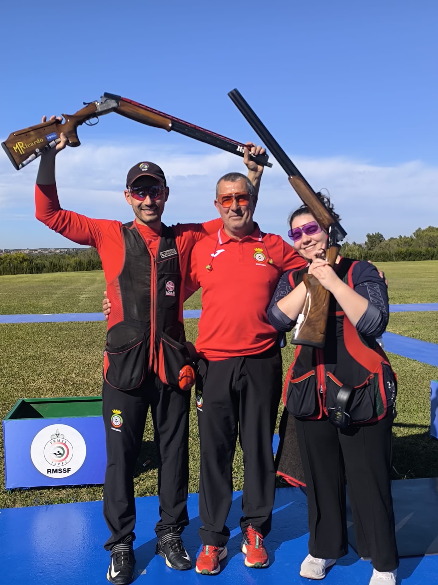 Os atletas Maria Inês de Barros e José Faria, acompanhados pelo treinador Custódio Ezequiel, encontram-se em Tangier, Marrocos, a representar a Seleção Nacional de Portugal na ISSF World Cup Shotgun.